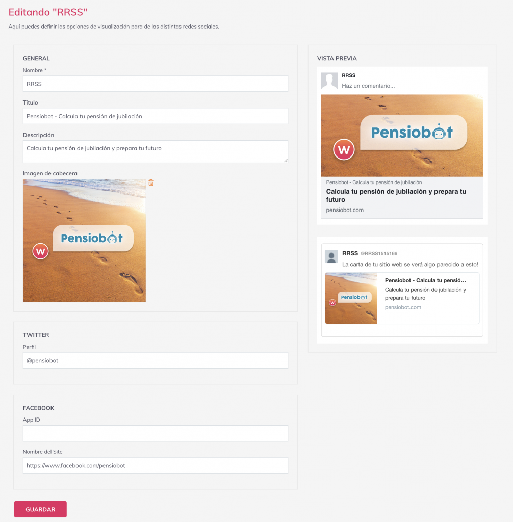 Deberás cumplimentar los datos solicitados, y en la parte derecha, encontrarás una previsualización del aspecto en los distintos formatos de cómo se verá tu URL cuando la compartas.